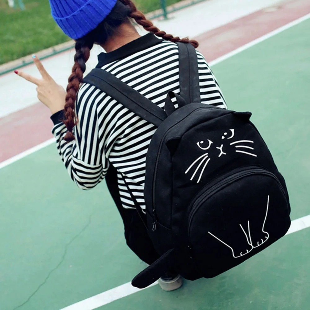 Lovely Cat Printing Backpack Women Canvas School Backpack For Teenagers Ladies Casual Cute Rucksack