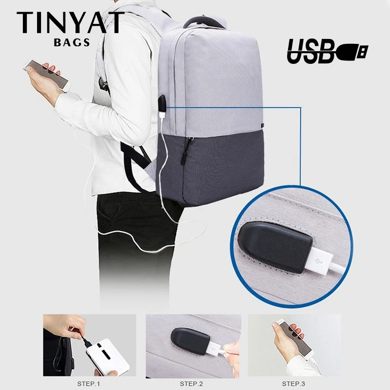 TINYAT Men Laptop Backpack For 15.6 inch USB Charging Backpacks Computer Anti-theft Bag School Back