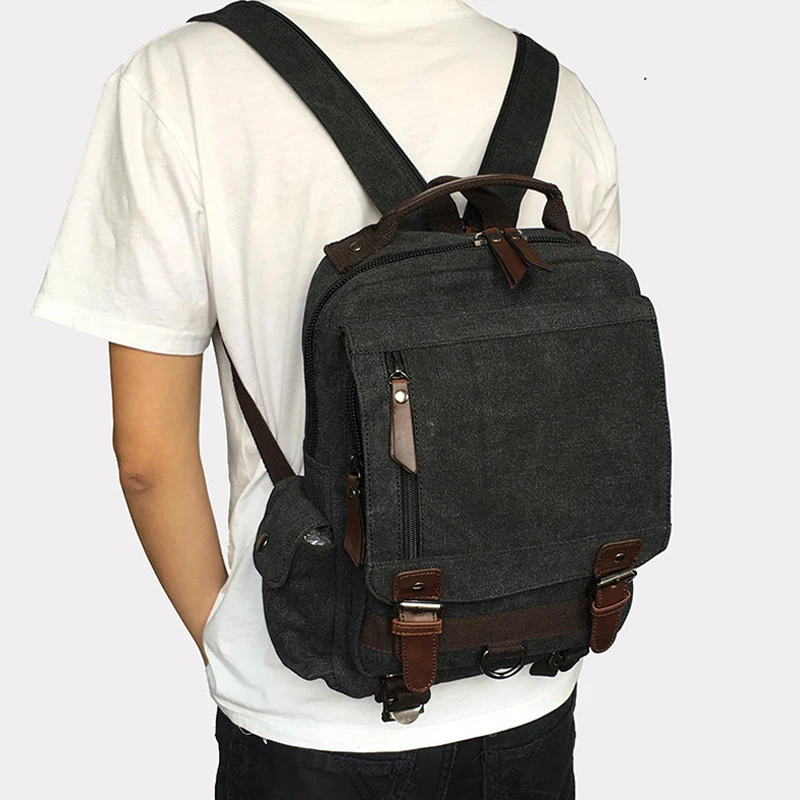 Scione Small Canvas Backpack Men Travel Back Pack Multifunctional Shoulder Bag Women Laptop Rucksac