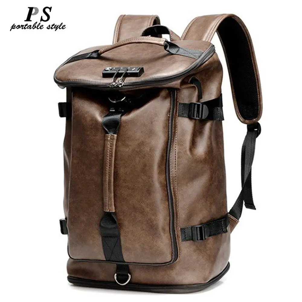Hot Vintage Multifunction Fashion Men Backpack Genuine Leather Backpack Leather School Bag Neutral
