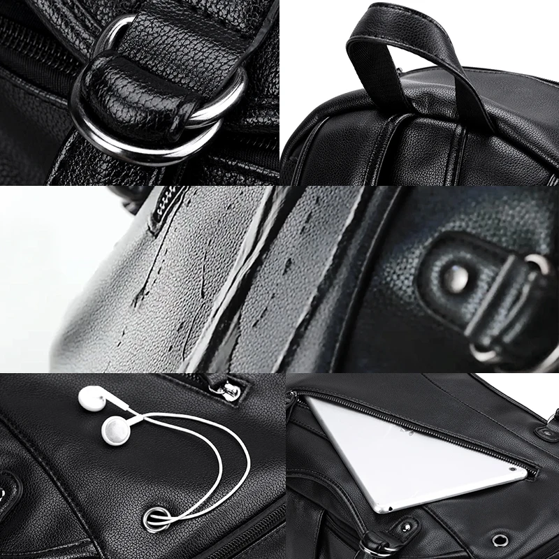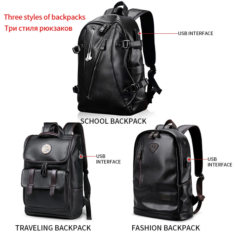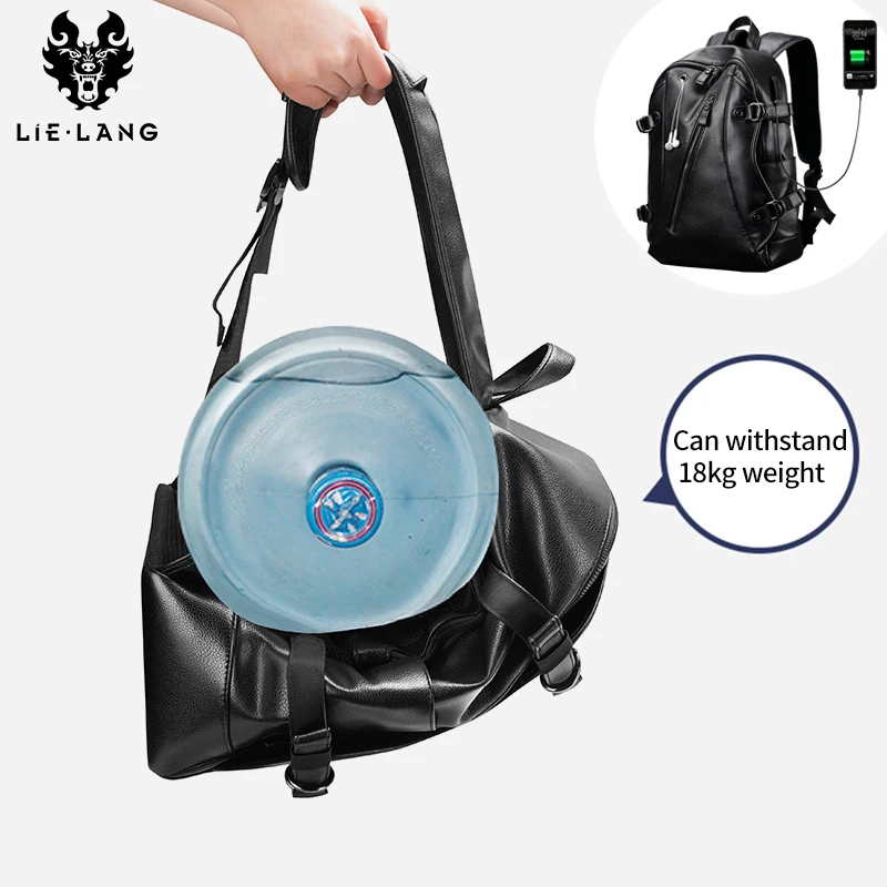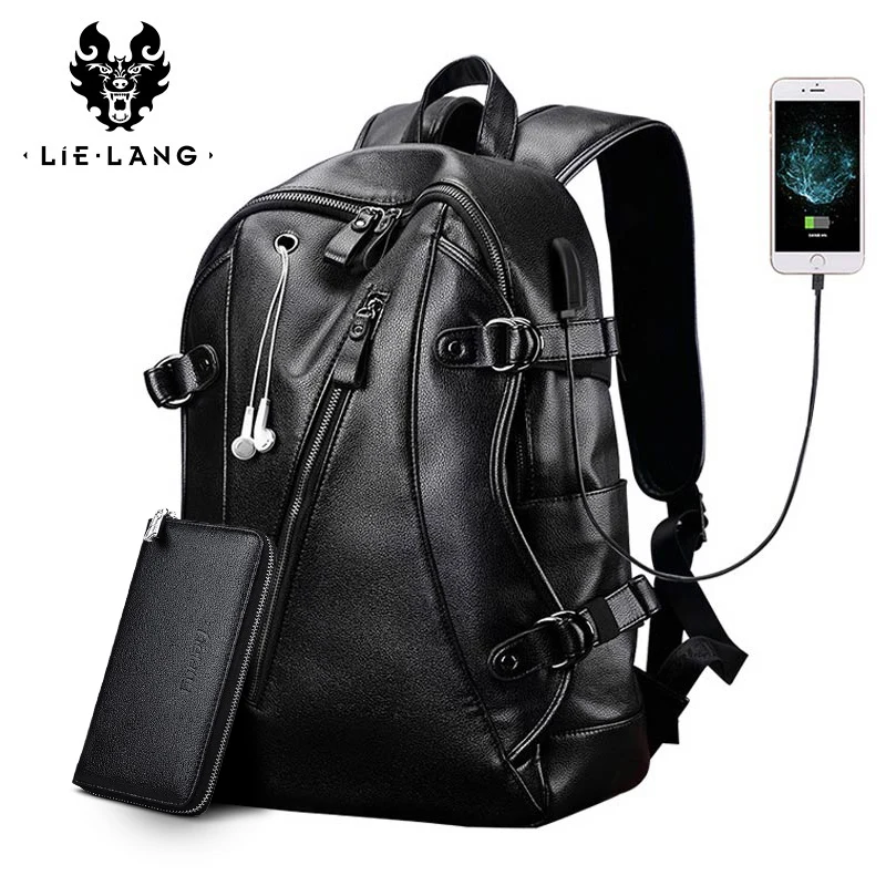 LIELANG Men Backpack External USB Charge Waterproof Backpack Fashion PU Leather Travel Bag Casual S