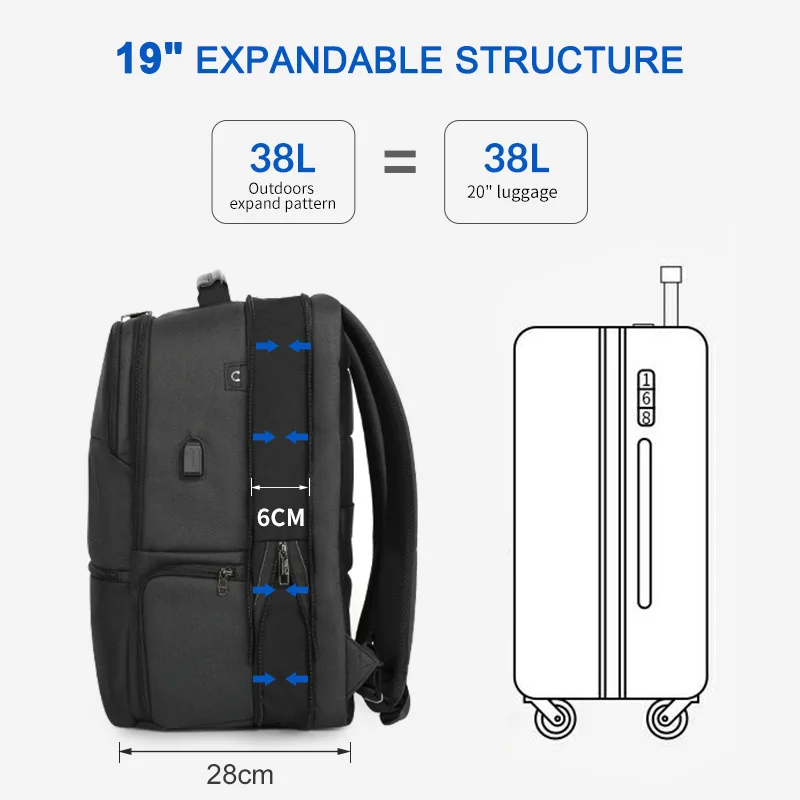 [33041260440] FEATURES:1. 19" Expandable capacity2. RFID function3. Quick usb charging 4. Splashproof material5. Anti theft four-footh double zippers6. Luggage strap