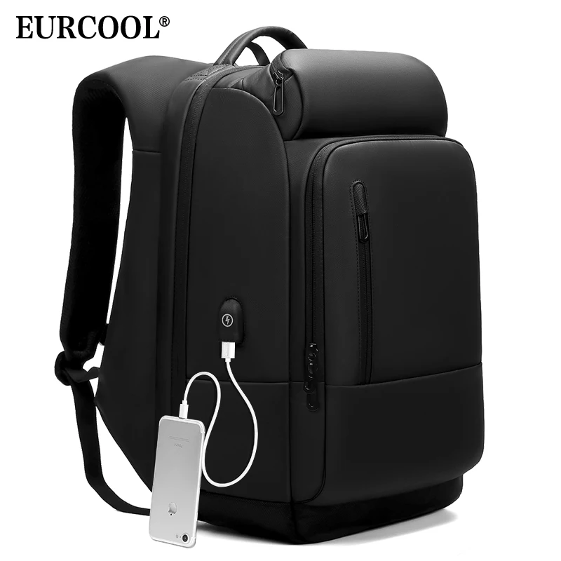 EURCOOL 17 inch Laptop Backpack For Men Water Repellent Functional Rucksack with USB Charging Port