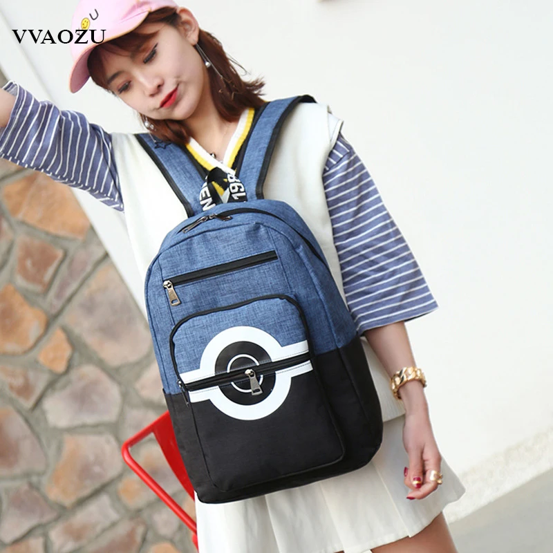 New Pocket Monsters Cartoon Women Men Canvas Backpack 5 Colors Pokemon Poke Ball Shoulder Bags Ruck