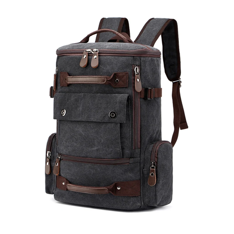 Canvas Men Vintage Backpack Bag Male Backpack 15.6'' 17 Inch Laptop Bags Outdoor Travel Back Pack T