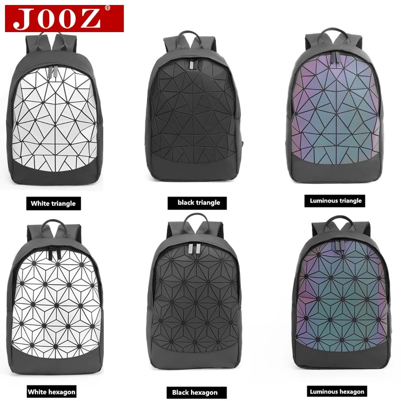 JOOZ Men Laser Luminous Backpack Geometric Laptop Backpack boy Backpack bag Teenage mochila large m