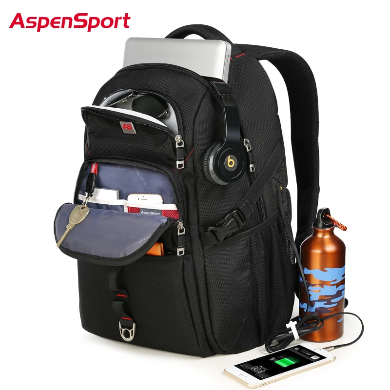 AspenSport Backpacks for Men with USB Charging & Anti-Theft Laptop Rucksacks Male Water Resistant B