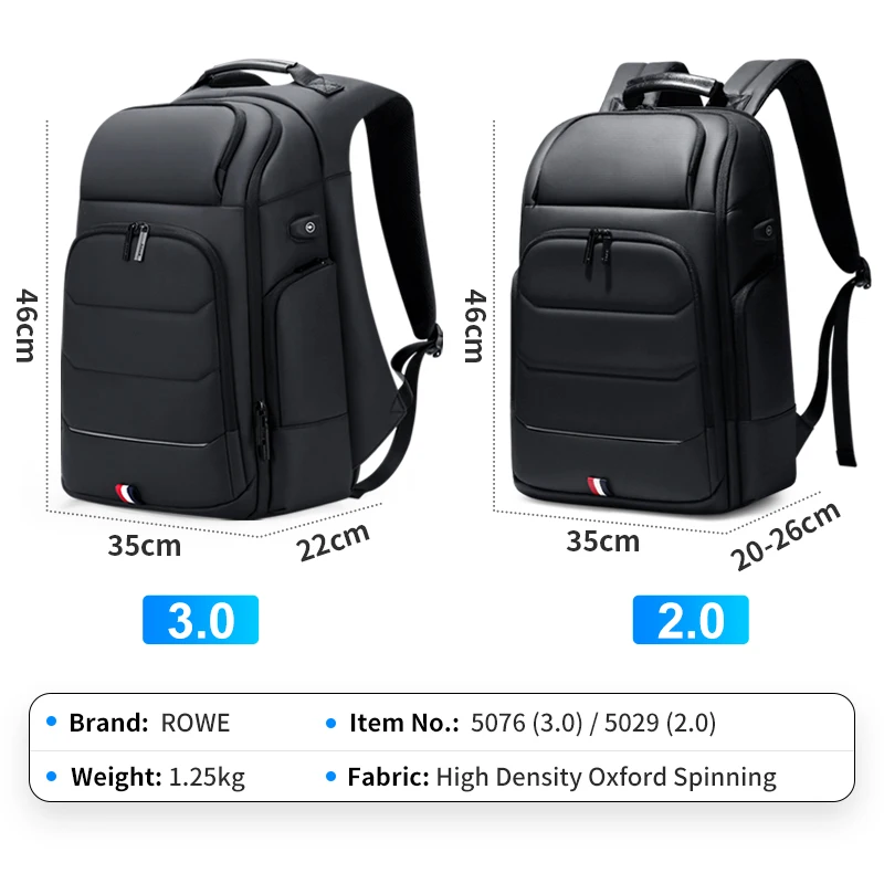 ROWE Men Backpack Multifunction USB Charging Wateproof Backpack Male Business Large Capacity Travel