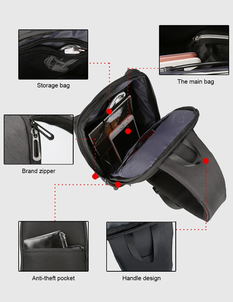 Kingsons 2019 New 3174-A Leisure Travel Single Shoulder Backpack 10.1 inch Chest Backpack For Men W