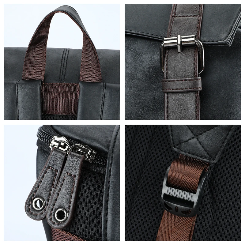 VICUNA POLO Simple Patchwork Large Capacity Mens Leather Backpack For Travel Casual mochila Men Day