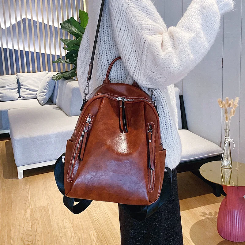 Classic Leather Backpack Women Large Capacity Backpacks Travel Bags College Student School Shoulder