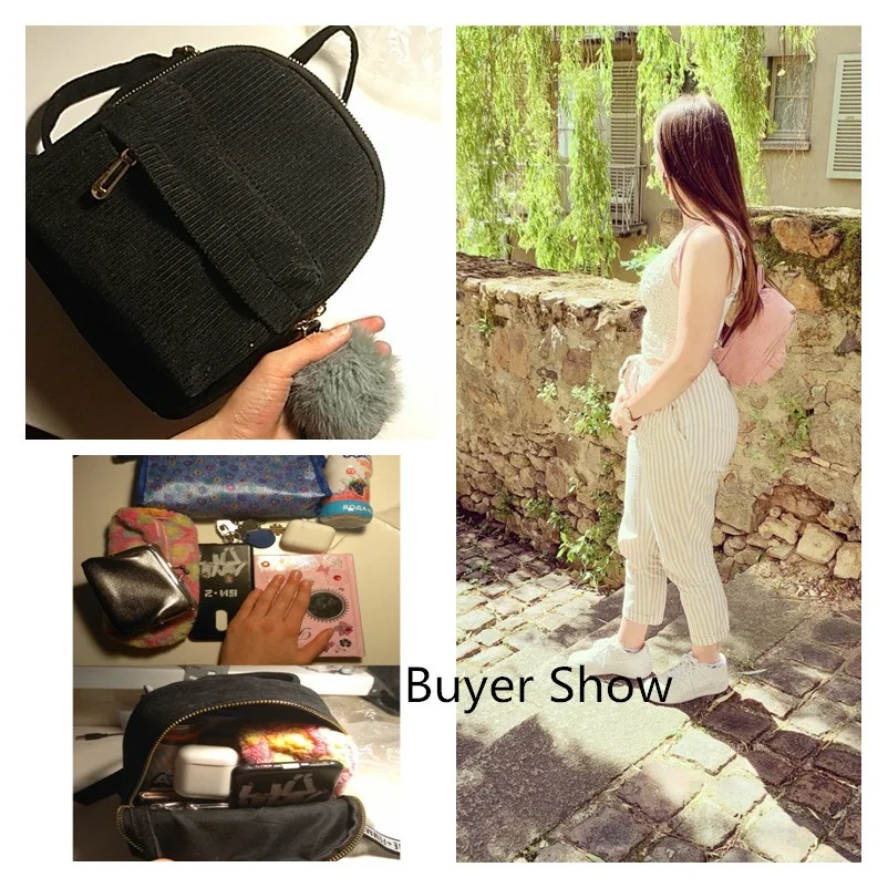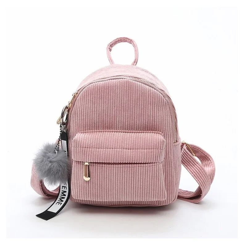 Miyahouse Women Mini Corduroy Backpack Small Cute Schoolbag with Fuzzy Ball Ladies Small Shoulder B