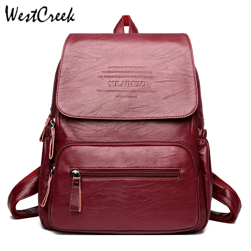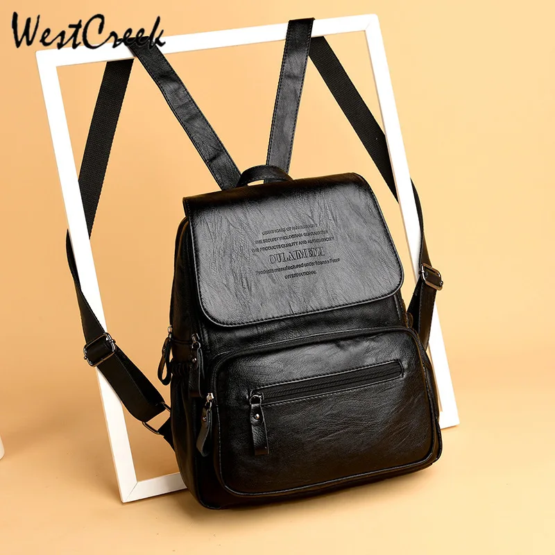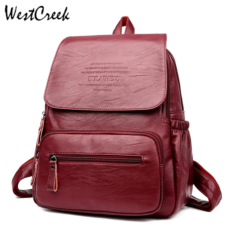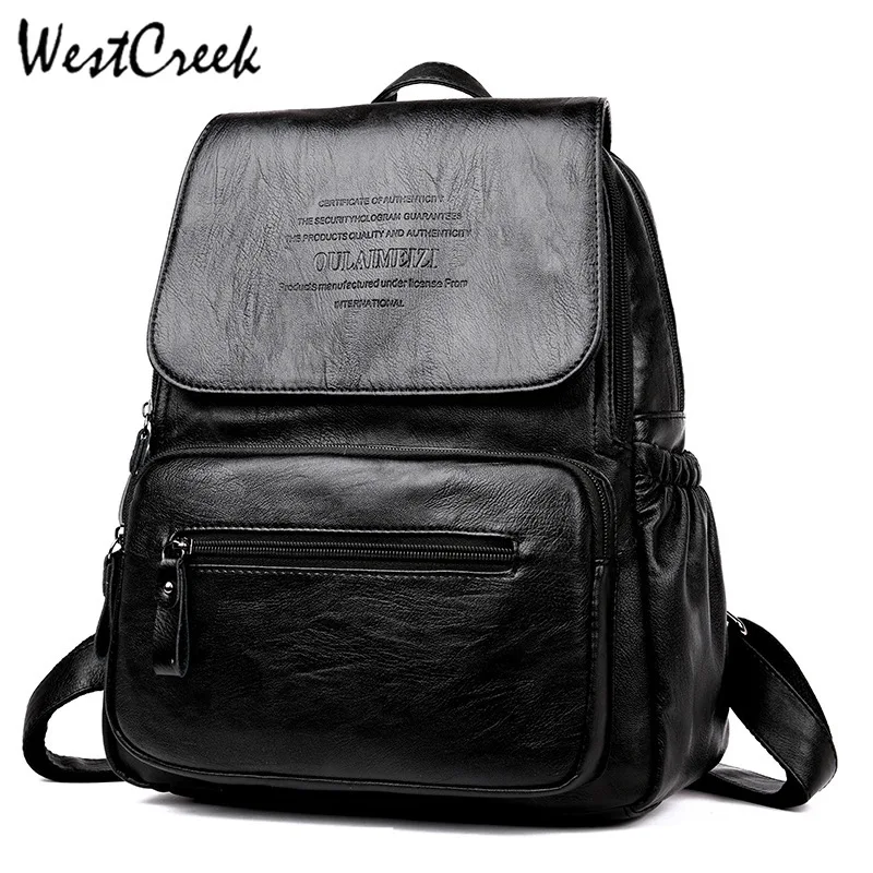 WESTCREEK Brand Vintage Leather Backpacks Female Travel Shoulder Bag Mochilas Women Backpack Large