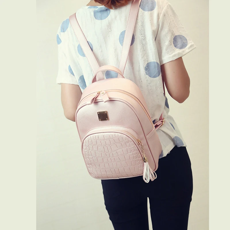 Girls Travel Bag outdoor ladies double-layer PU Leather backpack fashion trend simple wild stone pa