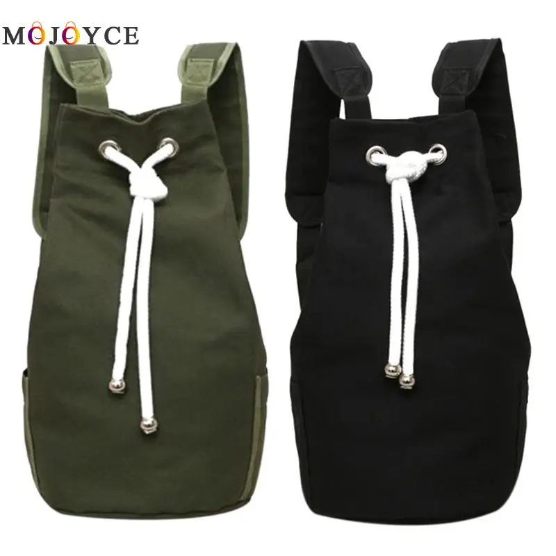 Casual Men Canvas Large Capacity Barrel Backpack Simple Travel Rucksack Army Green Back Pack Teenag