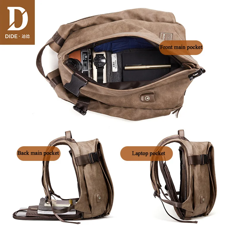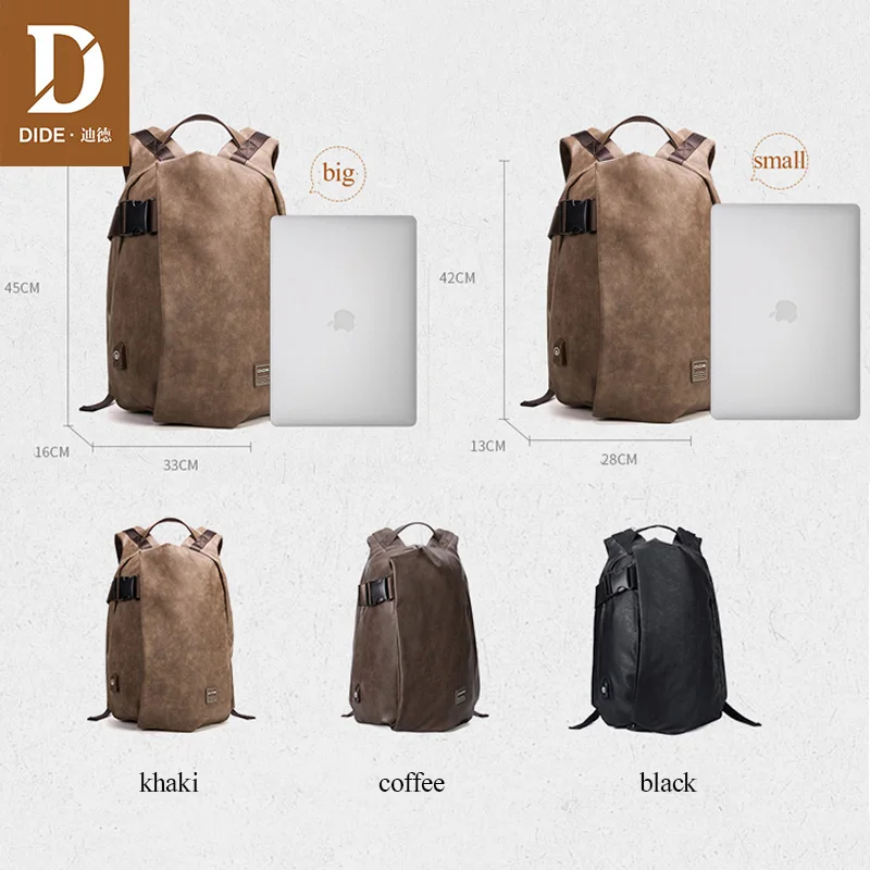 DIDE Brand USB Charge Backpack Men Travel Laptop Backpack 14/15 Inch PU Leather School Bag For moch
