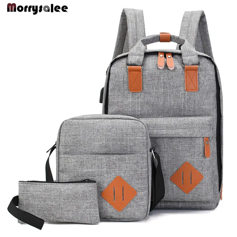 [33010948907] 40724 Men New Bag Cross-border backpack man students trend usb charging bag leisure three-piece computer packages fem