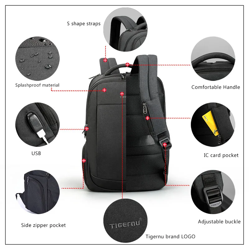 Tigernu Brand USB Charging Male Backpack Anti theft 15.6"Laptop business Backpack Bag Women school