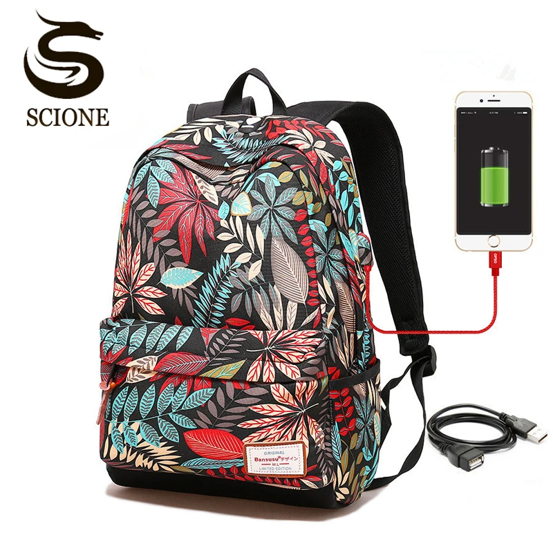 Hot USB Charging Laptop Women's Backpack For Teenage Students Girls School Backpack Printing Female