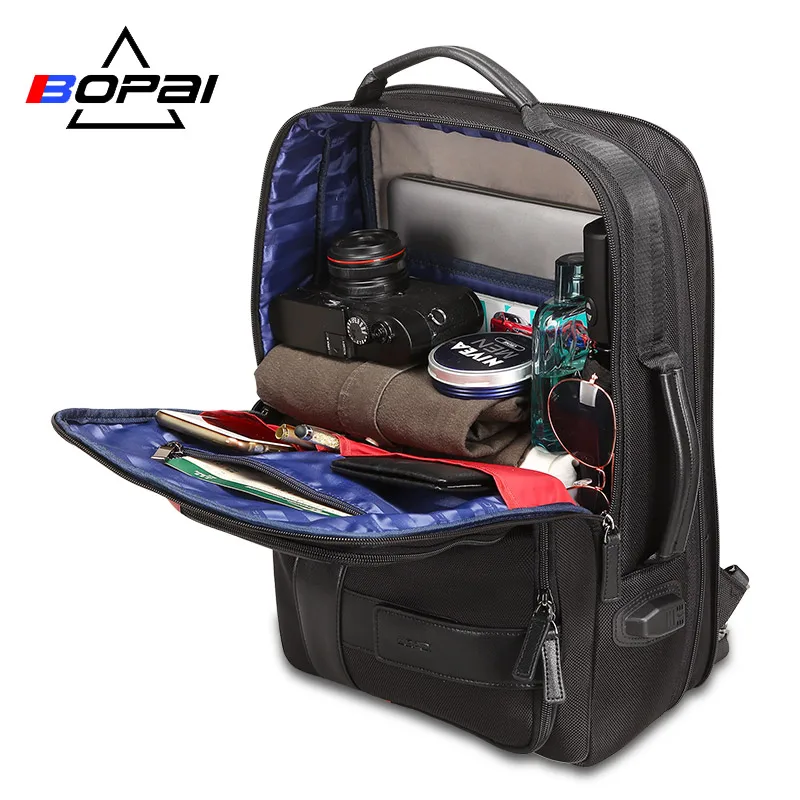 BOPAI Business Men's Backpack Black USB Charging Anti Theft Laptop Backpack 15.6 Inch Male Large Ca