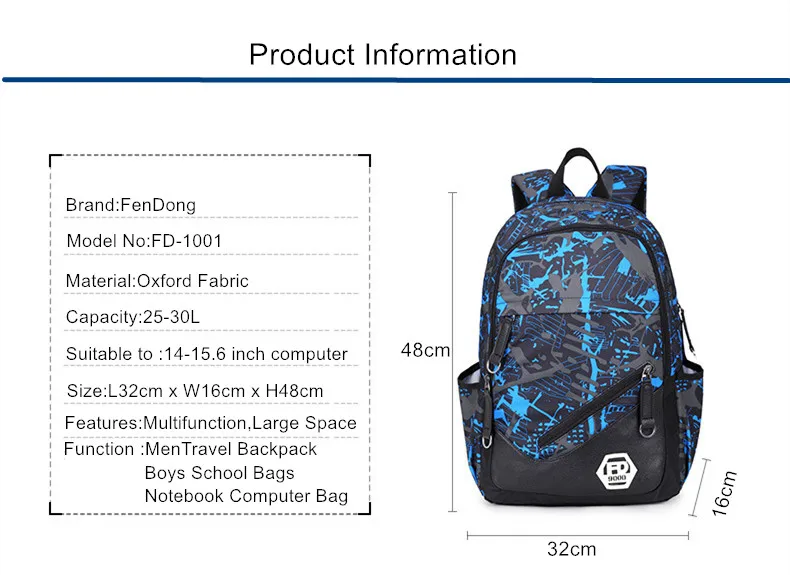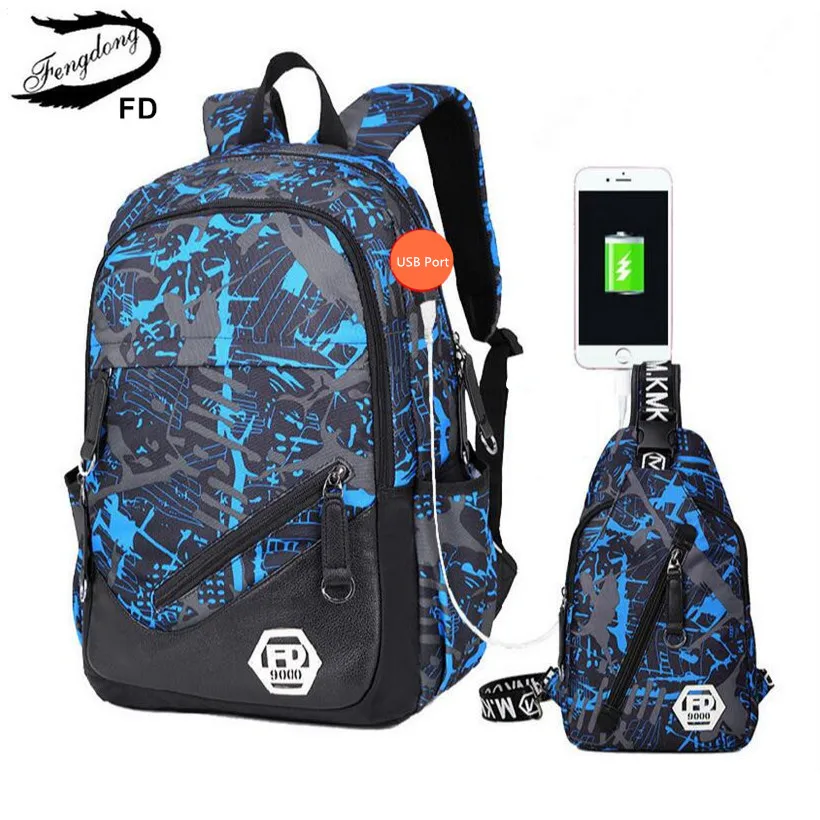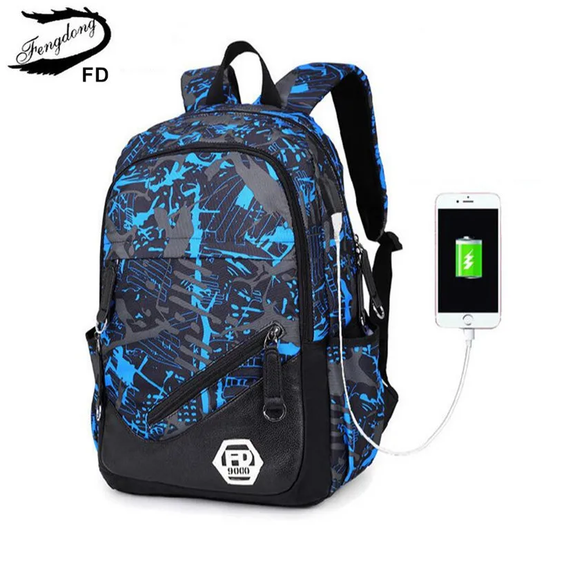 FengDong men external USB Charging travel Backpack Male Laptop bag 15.6 boys back bag high school b