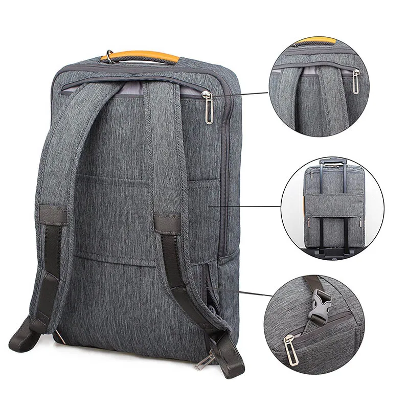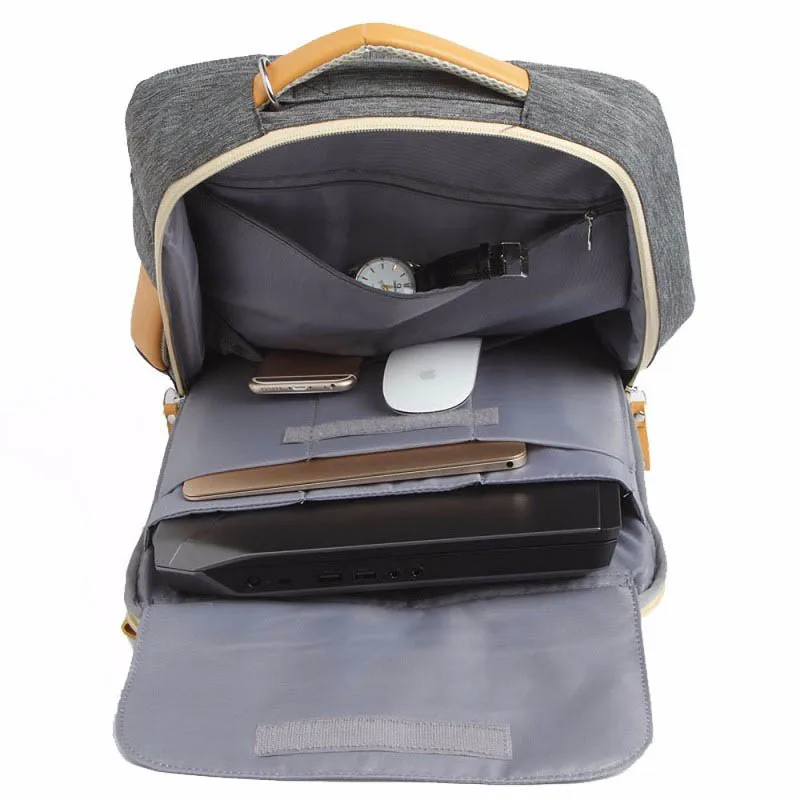 Gearmax Laptop Backpacks 15.6 17.3 Inch Blue/Gray Color Canvas Waterproof Backpack Genuine Leather