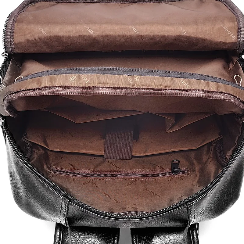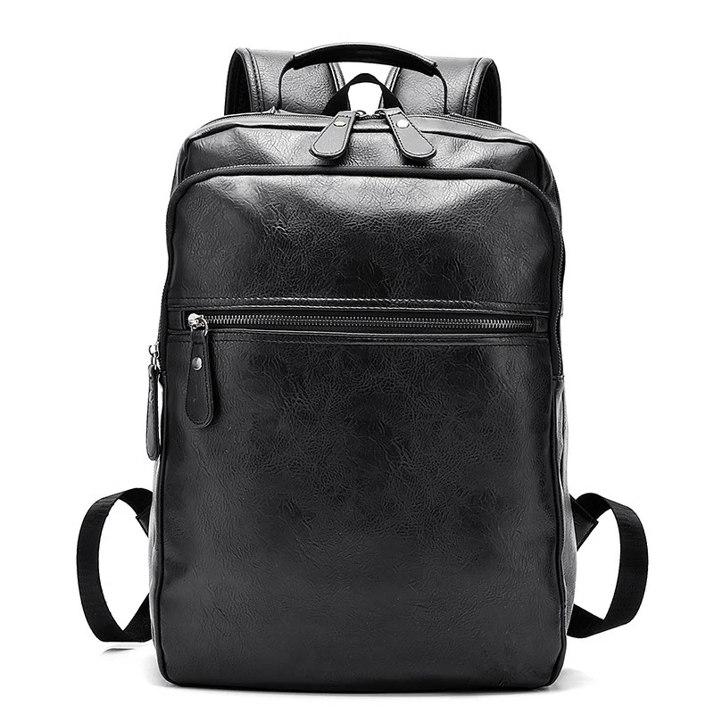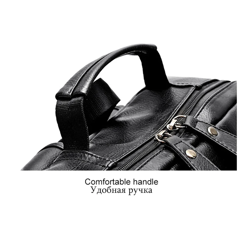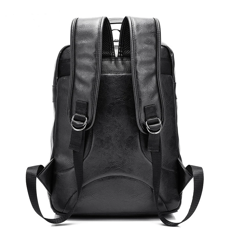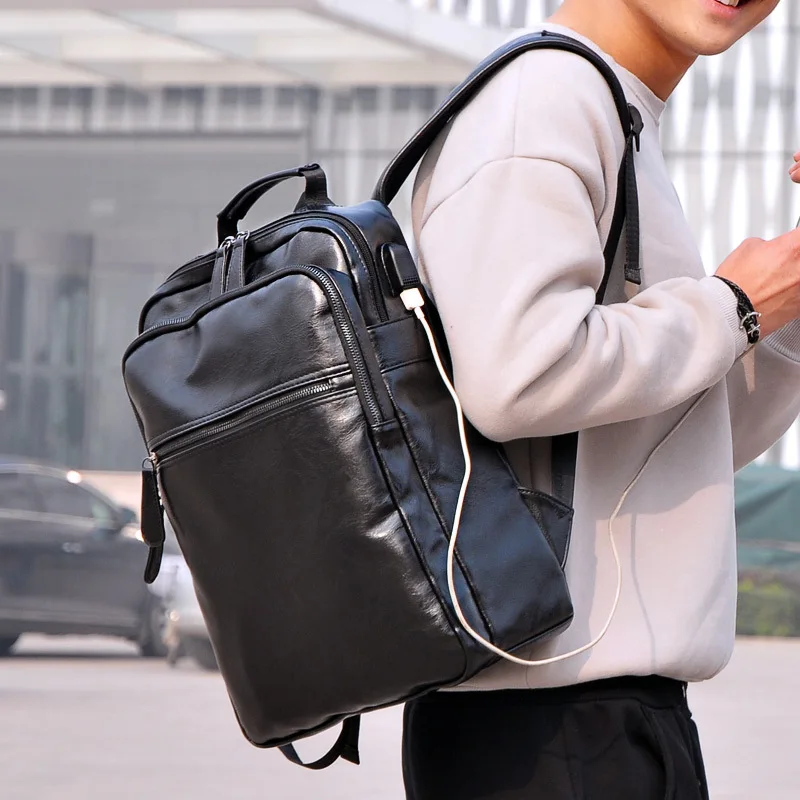BAIJIAWEI Large Capacity PU Leather Backpack USB Charging Men's Business Laptop Backpack School Bag