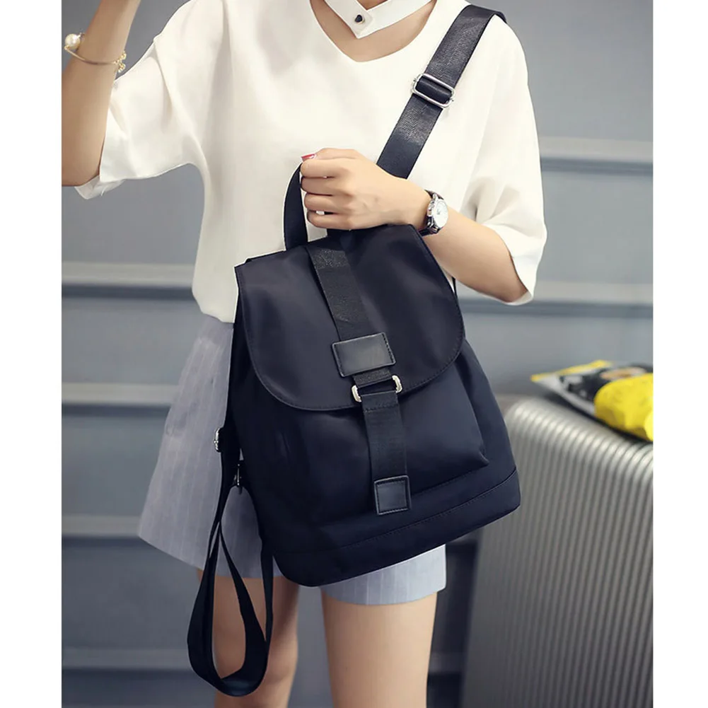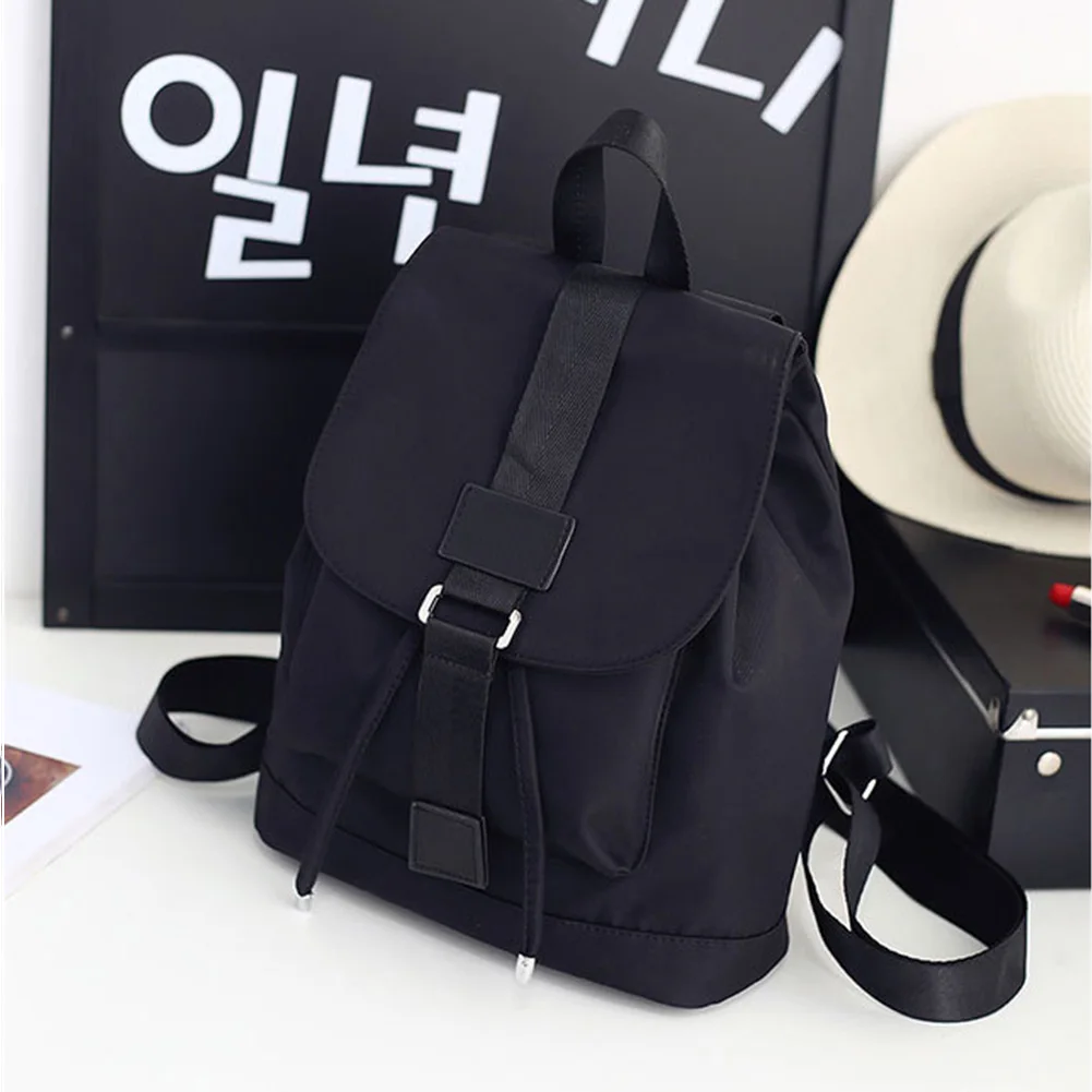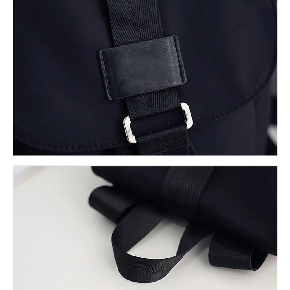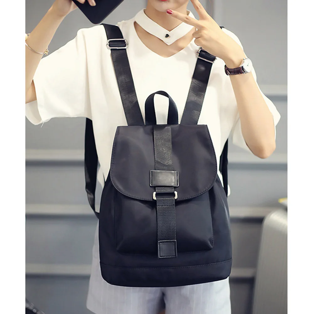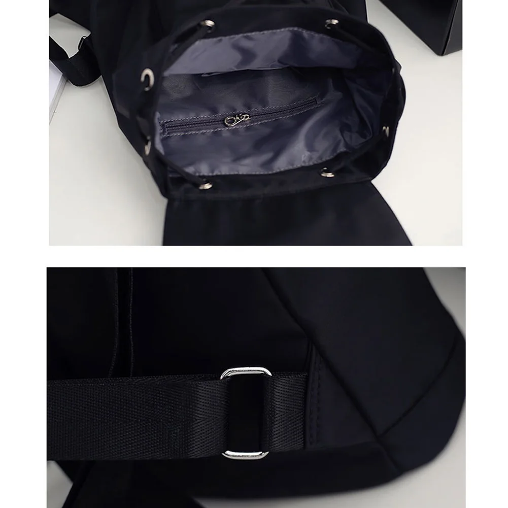 Student School Travel Large Laptop Drawstring Bag Black Nylon Backpacks AB@W3