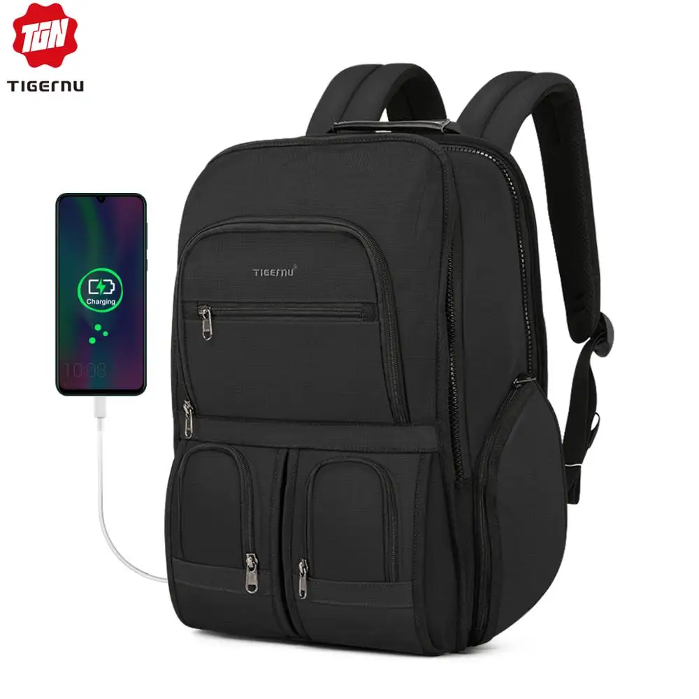Tigernu 2020 New RFID Upgraded Anti theft Zippers Waterproof Laptop Men Backpack With USB Large Cap