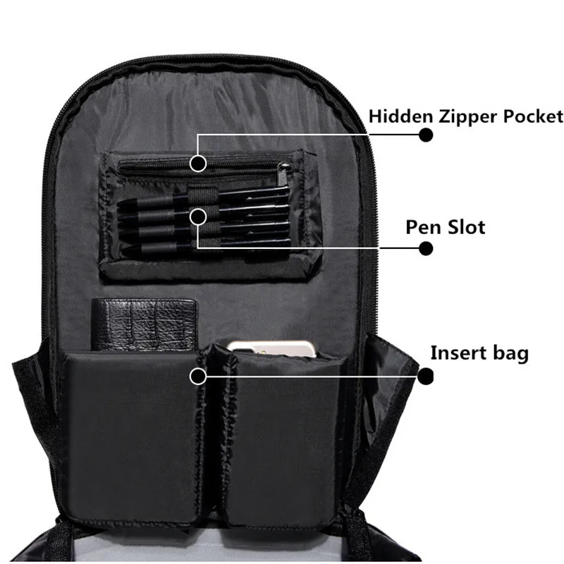 OZUKO Backpack Men Hard Shell Backpack Waterproof Anti Theft Travel Bags Black Creative Alien Casua