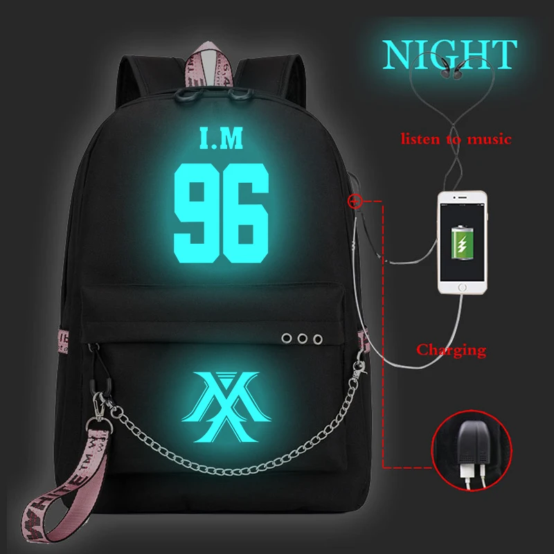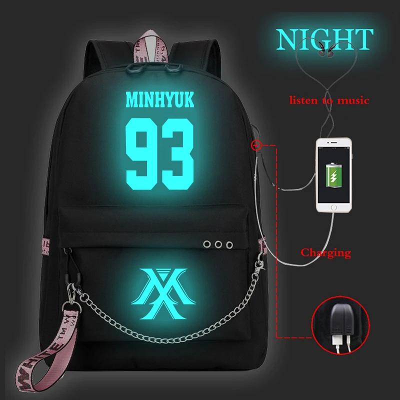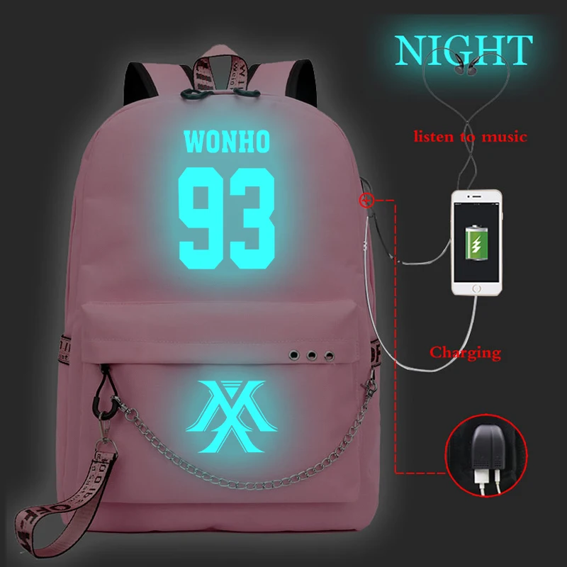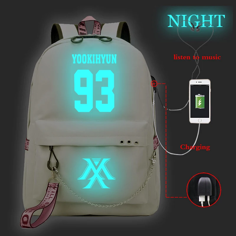 Mochila Feminina Kpop MONSTA X Backpack Women Backpack Usb Charge School Bags for Teenage Girls Lum